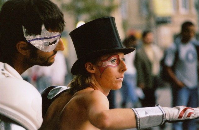 PERFORMANCE – DUETT im öffentlichen Raum 2006 Eine akrobatische Tanzperformance, die die Geschichte zweier Fantasiegestalten erzählt und in bunter, spielerischer Art auf die Strasse bringt. Performance und Choreagraphie: Svenja Rohde, Patrick Slepica |